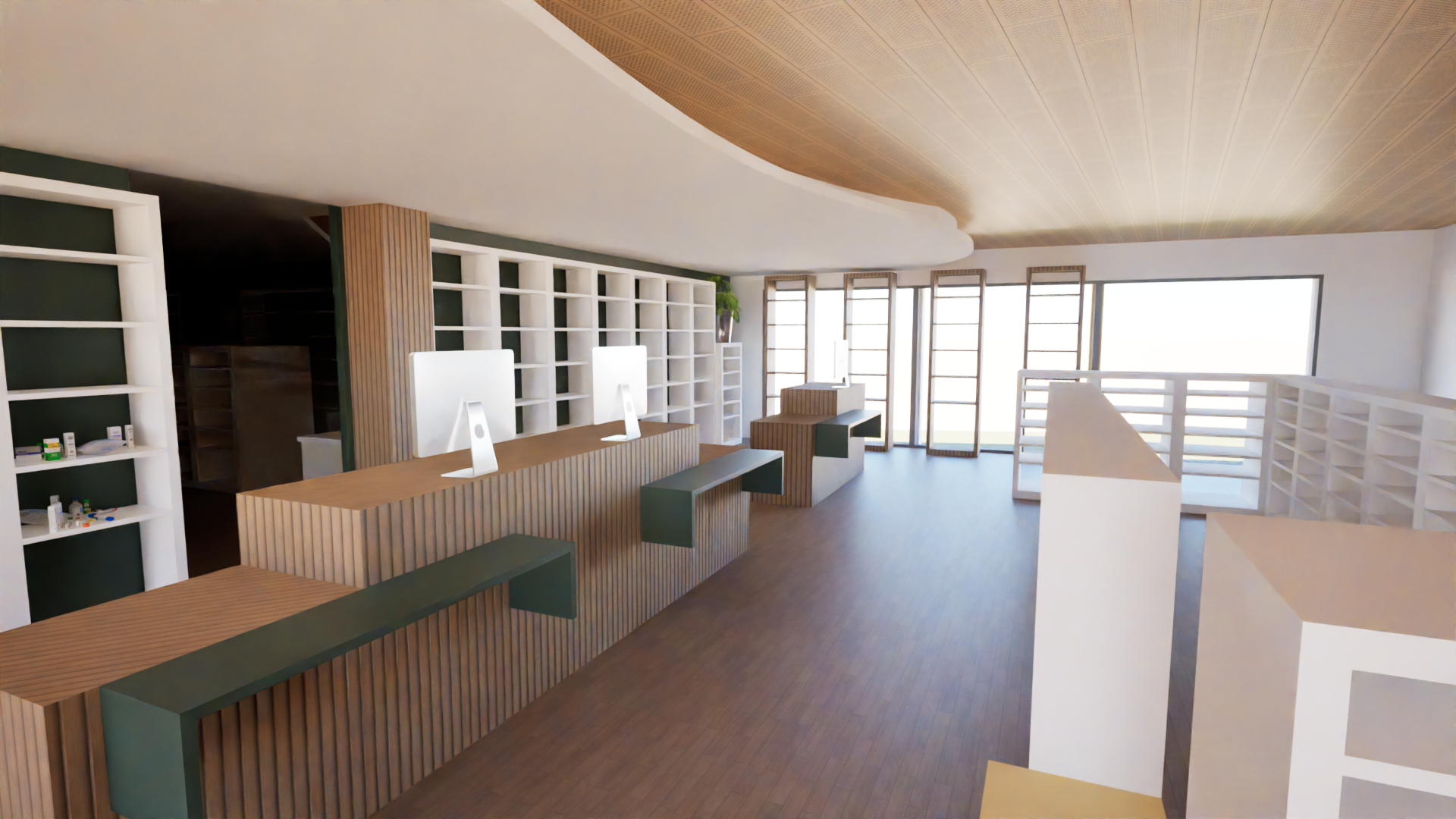 Au cœur du village, le projet remplace un ancien hangar déconstruit pour l'occasion. Il accueille la toute nouvelle pharmacie et un commerce alimentaire. Le volume bâti joue avec la pente pour offrir 2 entrées distinctes à ces 2 ERP superposés. L'emploi de matériaux locaux et l'aménagement d'un toit terrasse végétalisé permet d'assurer une bonne intégration paysagère.