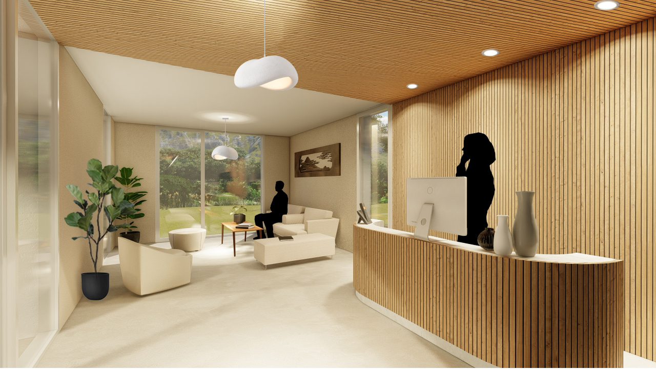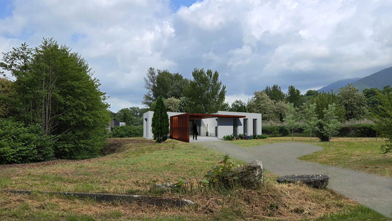 Conception de bureaux pour un cabinet de notaire implantés en zone inondable, avec un mode constructif préfabriqué pour la rapidité du chantier. Conception d'un aménagement paysager perméable. L'entrée est animée d'un généreux auvent en acier corten.