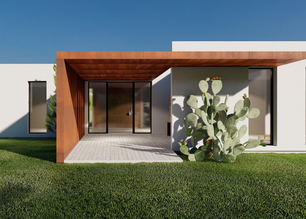 Conception de bureaux pour un cabinet de notaire implantés en zone inondable, avec un mode constructif préfabriqué pour la rapidité du chantier. Conception d'un aménagement paysager perméable. L'entrée est animée d'un généreux auvent en acier corten.