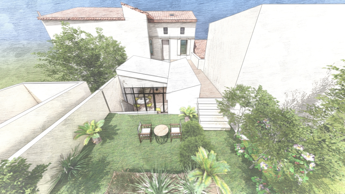 Cet immeuble est bordé par la route de Bayonne. Il propose un ordonnancement classique avec 2 locaux sur rue séparés par une desserte pour les logements des étages. Notre travail sur ce projet consiste en une réhabilitation énergétique globale, à laquelle s’ajoute une réorganisation des différents flux de l’immeuble via la création d’un nouvel escalier. Ce qui peut être conservé l’est, et les désordres spatiaux sont remis à plat afin de proposer des logements de qualité certaine. Dans la cour intérieure, un appartement à patio vient créer un petit évènement et finir le système.