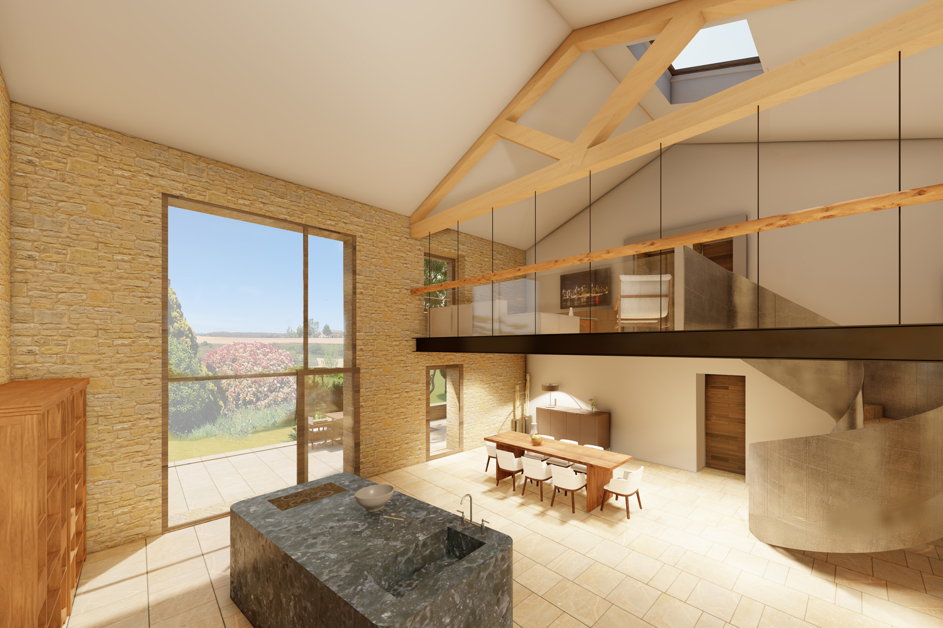 Cette ancienne grange agricole vacante depuis plusieurs années est réhabilitée pour accueillir un grand gîte. Le projet fait la part belle aux matériaux bruts. Les qualités d'espace et de volume de la grange sont valorisées. La réflexion se prolonge vers l'extérieur par une terrasse et l'aménagement des jardins s'ouvrant sur le grand paysage.